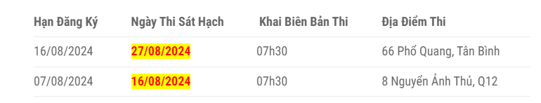 Mỗi trung tâm sẽ có một địa điểm thi sát hạch cụ thể và địa điểm của bạn mà lựa chọn đơn vị cho phù hợp, thi gần nhà.